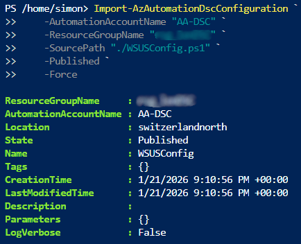 Import-AzAutomationDscConfiguration `