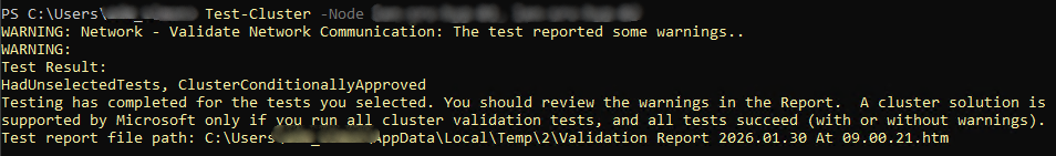 Test-Cluster -Node Hyper-V-01, Hyper-V-02Code language: PowerShell (powershell)