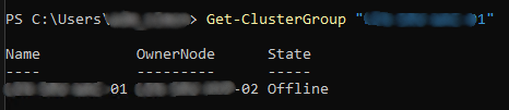 Start-ClusterGroup "<NAMEOFCLUSTERGROUP"Code language: PowerShell (powershell)